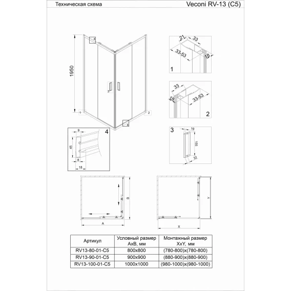 Душевой уголок 90x90 см Veconi Rovigo RV13-90-01-C5 прозрачное