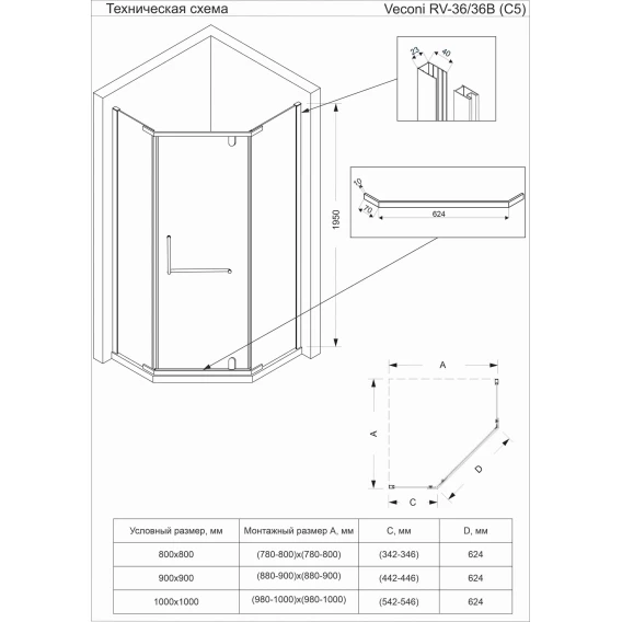 Душевой уголок 80x80 см Veconi Rovigo RV36-80-01-C5 прозрачное