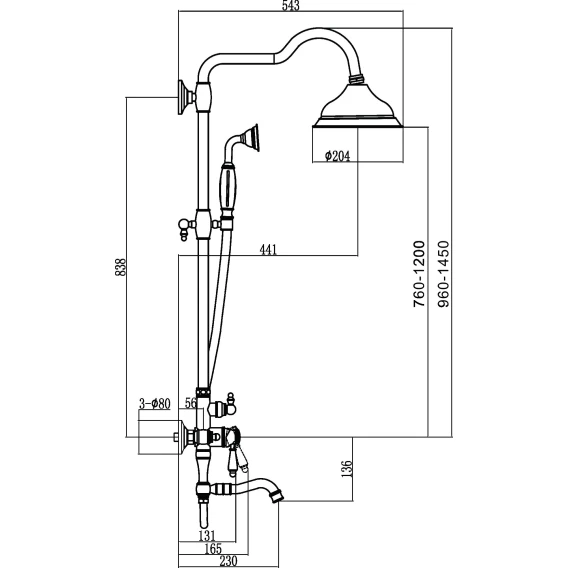 Аэратор, Металлическая розетка, Эксцентрики, Душевой шланг, Душевая лейка, Держатель для душевой лейки, Верхний душ, Смеситель, Кронштейн, Штанга душевая