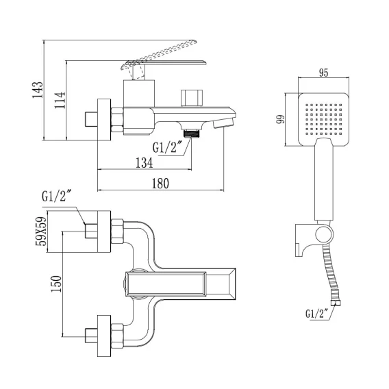 Аэратор, Металлическая розетка, Эксцентрики, Душевой шланг, Душевая лейка, Держатель для душевой лейки