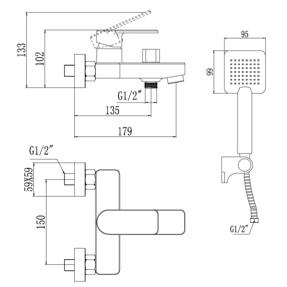 Аэратор, Металлическая розетка, Эксцентрики, Душевой шланг, Душевая лейка, Держатель для душевой лейки