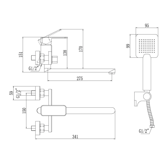 Аэратор, Металлическая розетка, Эксцентрики, Душевой шланг, Душевая лейка, Держатель для душевой лейки