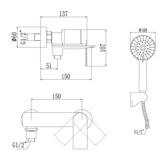 Аэратор, Металлическая розетка, Эксцентрики, Душевой шланг, Душевая лейка, Держатель для душевой лейки