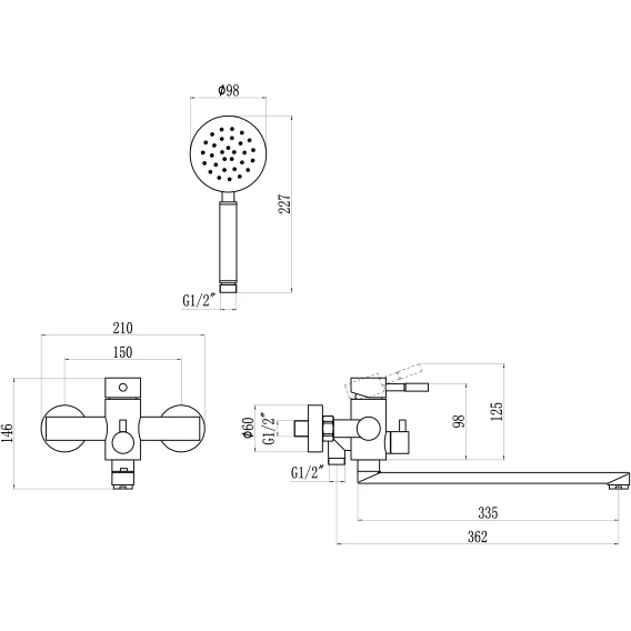 Аэратор, Металлическая розетка, Эксцентрики, Душевой шланг, Душевая лейка, Держатель для душевой лейки