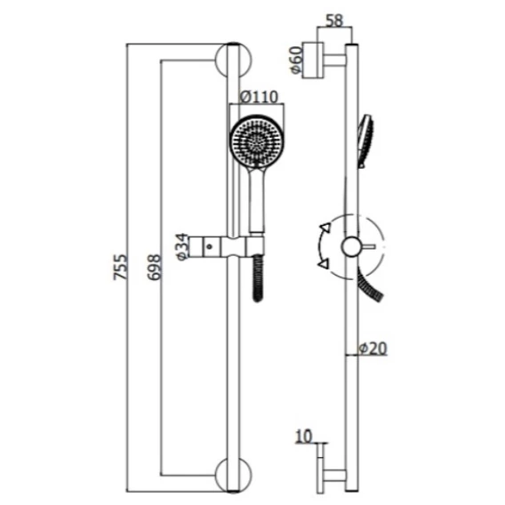Крепление, Душевой шланг, Душевая лейка, Держатель для душевой лейки, Штанга душевая