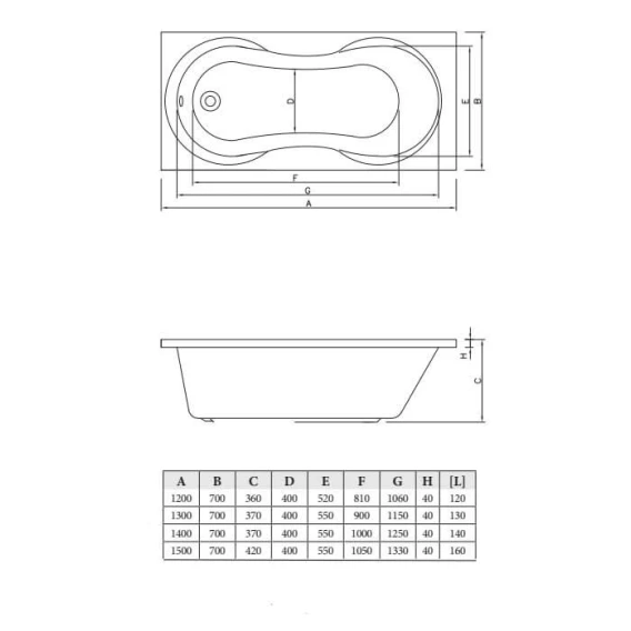 Акриловая ванна 150x70 см C-Bath Salus CBQ006004
