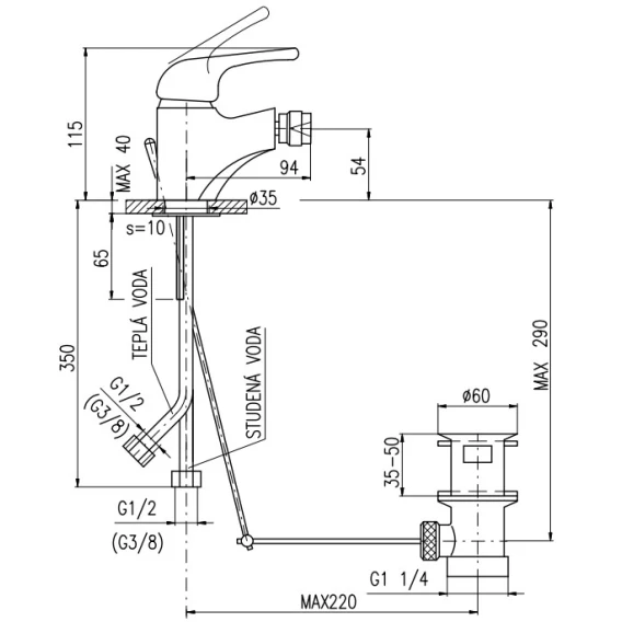 Смеситель для биде с донным клапаном Rav Slezak Sazava SA045.5