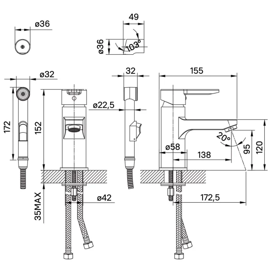Смеситель для раковины с гигиеническим душем IDDIS Sena SENSB00i08