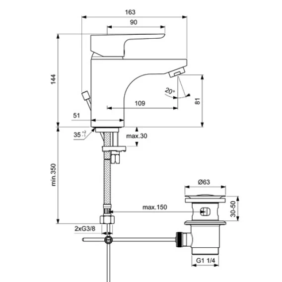 Смеситель для раковины с донным клапаном Ideal Standard Ceraplan III B0704AA