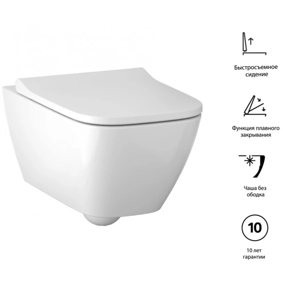 Унитаз подвесной Geberit Smyle Square 500.683.01.1 безободковый, с сиденьем микролифт, белый