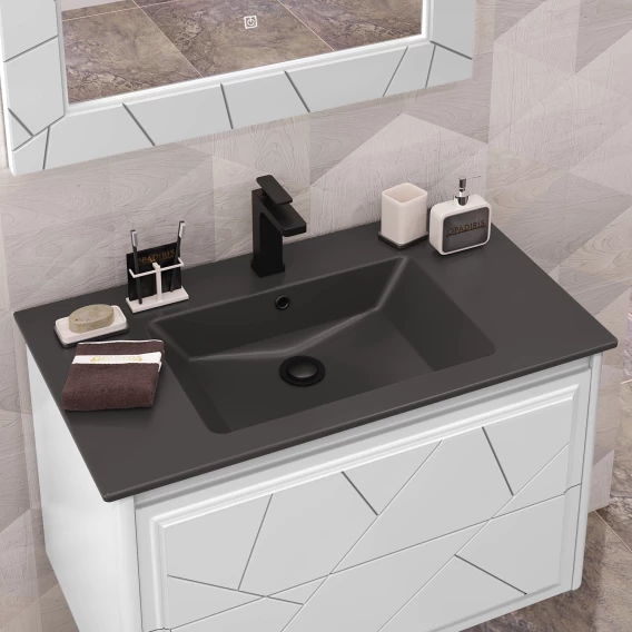Механизм доводчика, Ящик, LED подсветка, Сенсорный выключатель, Система "Push-to-open", Зеркало, Тумба под раковину, Раковина