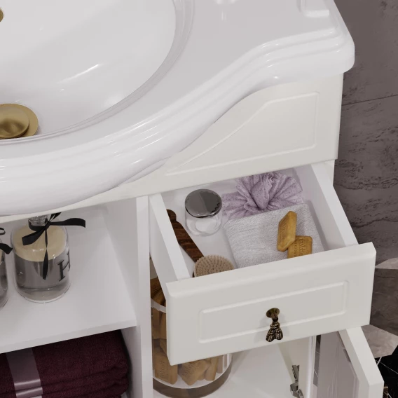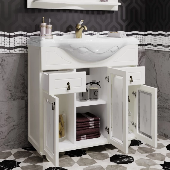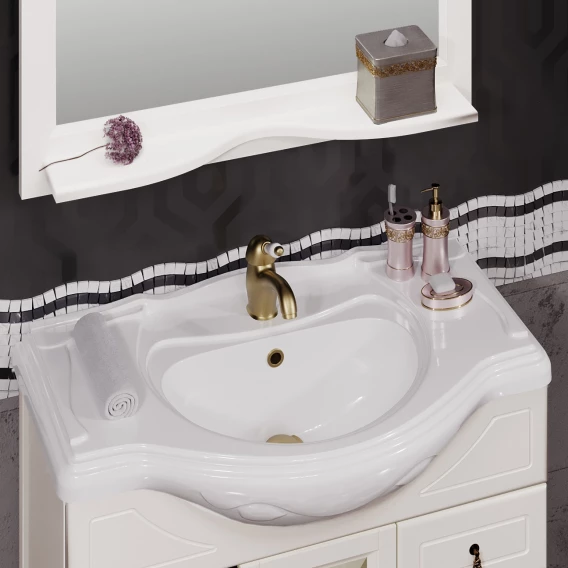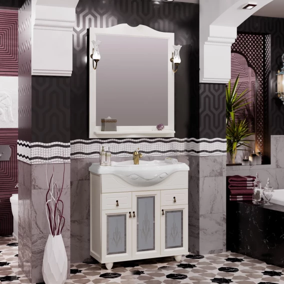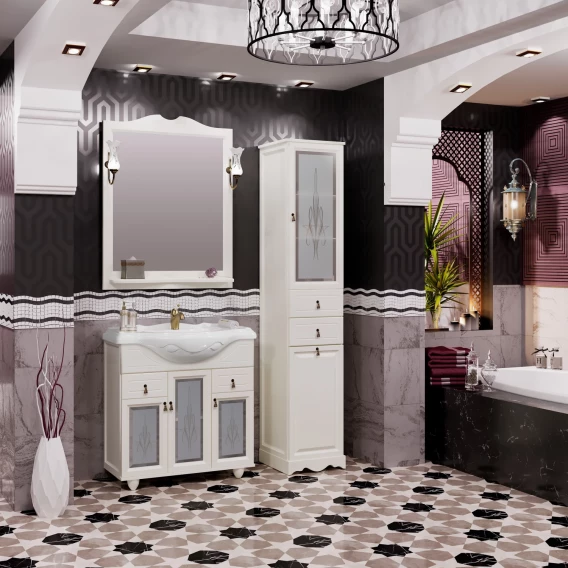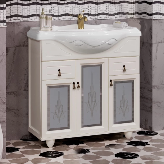 Тумба с раковиной слоновая кость 87 см с художественным стеклом Opadiris Тибет