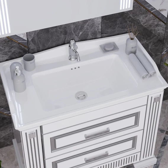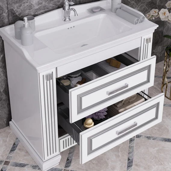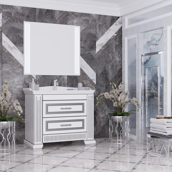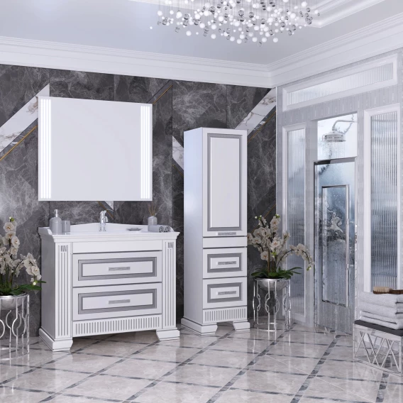 Тумба с раковиной белый серебряная патина 100 см Opadiris Оникс