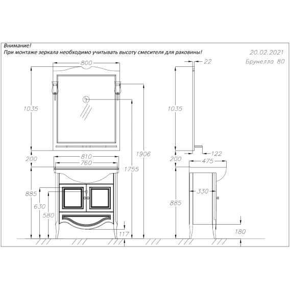 Умывальник мебельный Opadiris Kirovit Классик 800