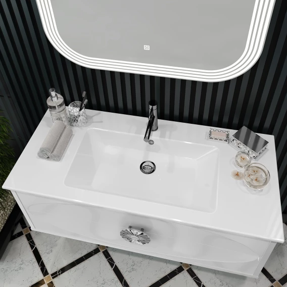 Тумба с раковиной белый глянец/хром 121 см Opadiris Ибица