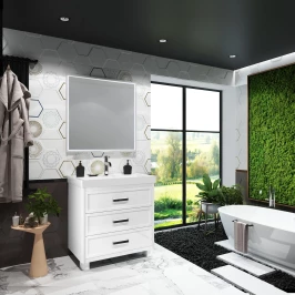 Механизм доводчика, Ящик, Ручки, LED подсветка, Сенсорный выключатель, Ножки, Зеркало, Тумба под раковину, Раковина