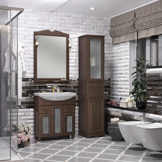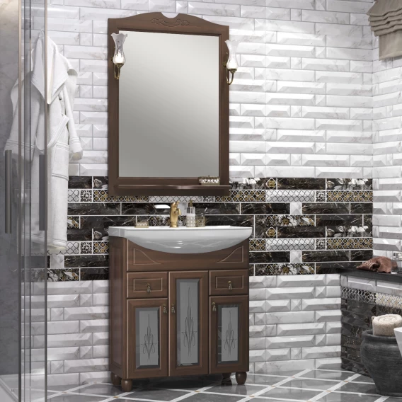 Тумба с раковиной орех антикварный 76 см с художественным стеклом Opadiris Тибет