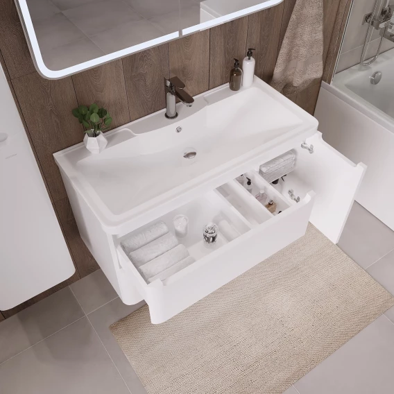 Тумба с раковиной белый глянец 90 см Vincea Mia VMC-2MA900GW + VCB-3M900W