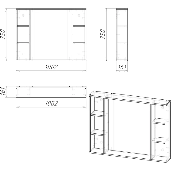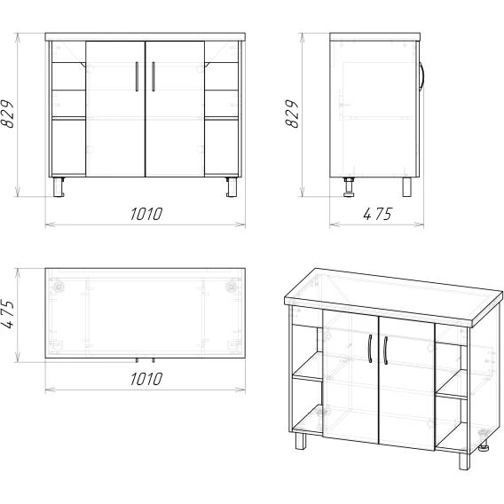 Механизм доводчика, Полочка, Ручки, Ножки, Зеркало, Столешница, Тумба под раковину, Раковина