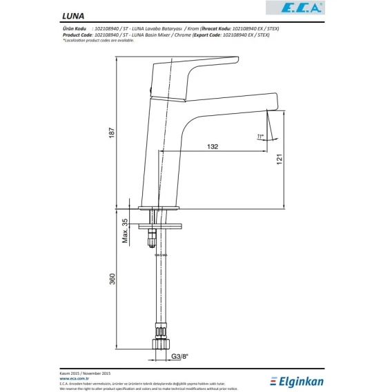 Комплект смесителей E.C.A Luna 102102450EX + 102108955EX + 102146029EX