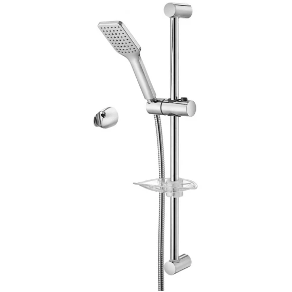 Крепление, Аэратор, Гибкая подводка, Металлическая розетка, Эксцентрики, Душевой шланг, Душевая лейка, Держатель для душевой лейки, Смеситель, Мыльница, Штанга душевая