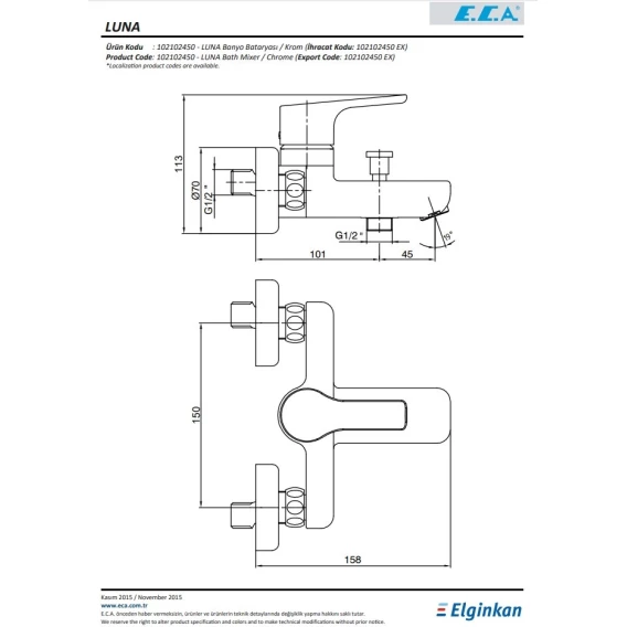 Комплект смесителей E.C.A Luna 102102450EX + 102108955EX + 102146029EX