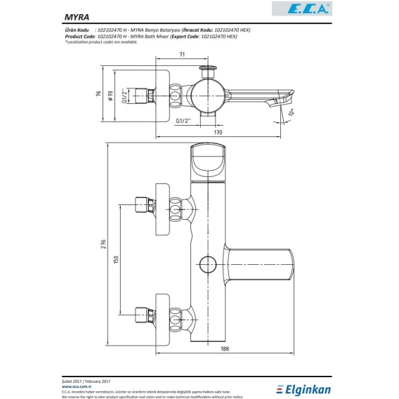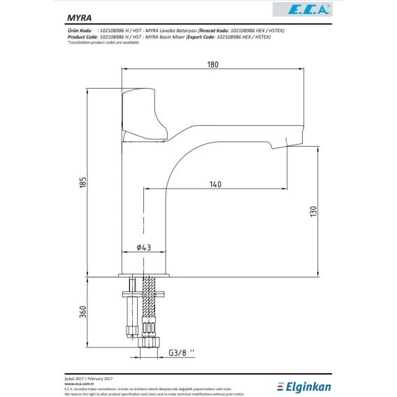 Комплект смесителей E.C.A Myra 102102470HEX + 102108986HEX