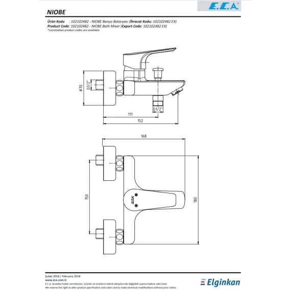 Комплект смесителей E.C.A Niobe 102102482EX + 102188053EX + 102146029EX