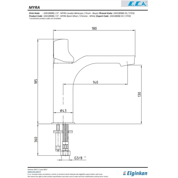Комплект смесителей E.C.A Myra 104102470EX + 104108986EX