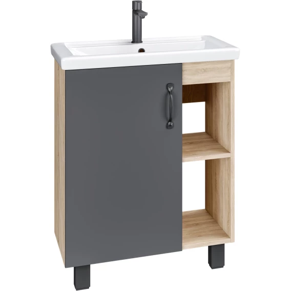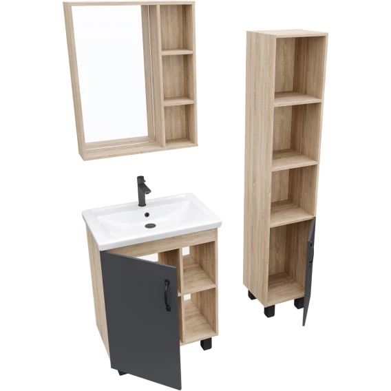 Комплект мебели дуб сонома/серый матовый 61 см Grossman Флай 106002 + 16413 + 206001