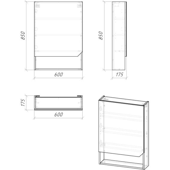 Механизм доводчика, Ящик, Полочка, Зеркало-шкаф, Тумба под раковину, Раковина