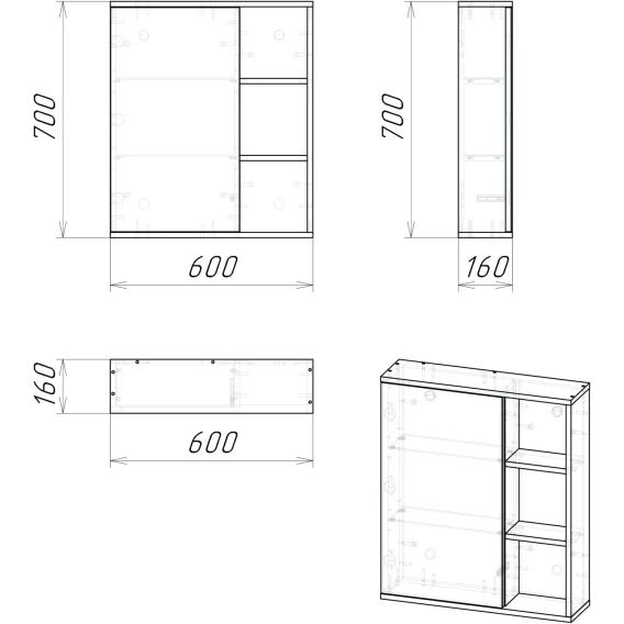 Механизм доводчика, Ящик, Полочка, Ручки, Зеркало-шкаф, Тумба под раковину, Раковина