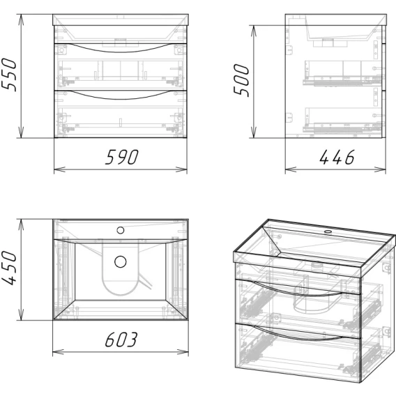 Механизм доводчика, Ящик, Тумба под раковину, Раковина