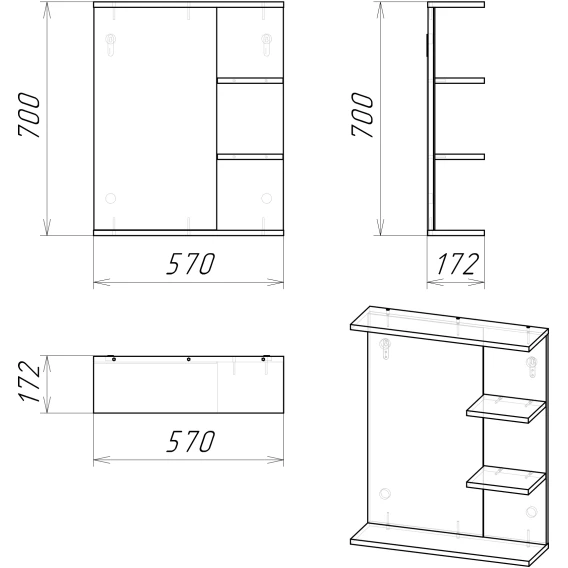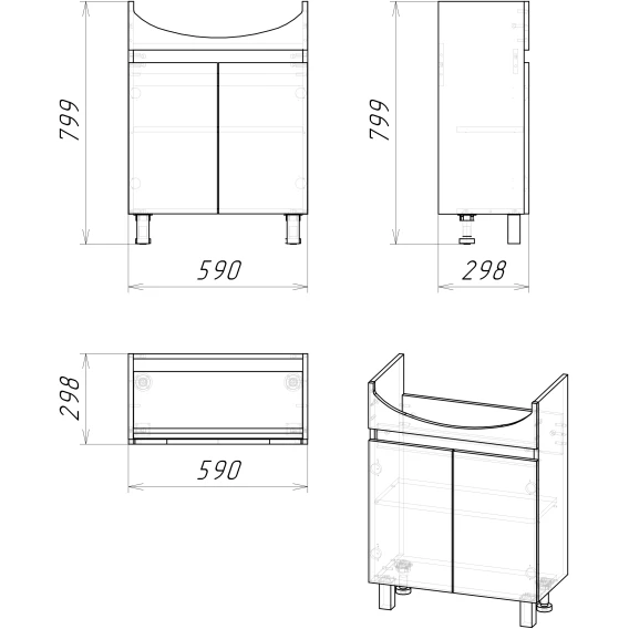 Механизм доводчика, Полочка, Ножки, Зеркало, Тумба под раковину, Раковина