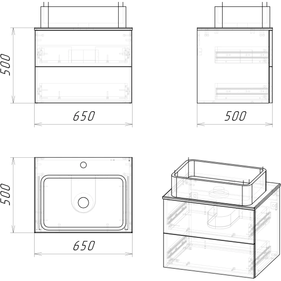 Механизм доводчика, Ящик, Полочка, Зеркало-шкаф, Система "Push-to-open", Столешница, Тумба под раковину, Раковина