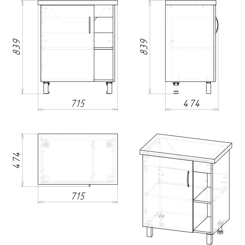 Механизм доводчика, Полочка, Ручка, Ножки, Зеркало, Столешница, Тумба под раковину, Раковина