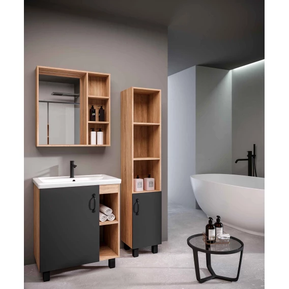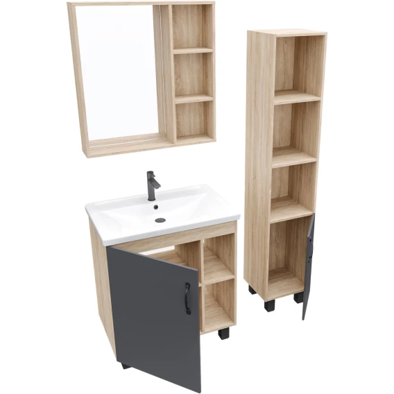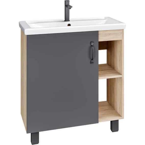 Тумба с раковиной дуб сонома/серый матовый 71 см Grossman Флай 107002 + 15840