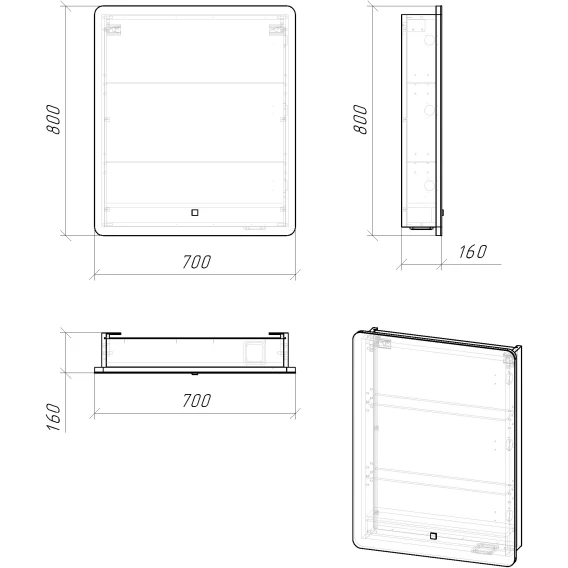 Механизм доводчика, Ящик, Полочка, LED подсветка, Зеркало-шкаф, Сенсорный выключатель, Тумба под раковину, Раковина
