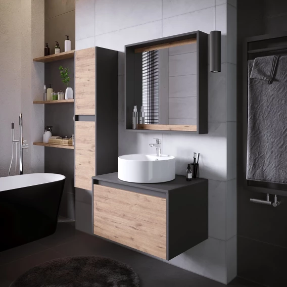 Тумба с раковиной дуб веллингтон/графит 70 см Grossman Смарт 107009 + GR-3012