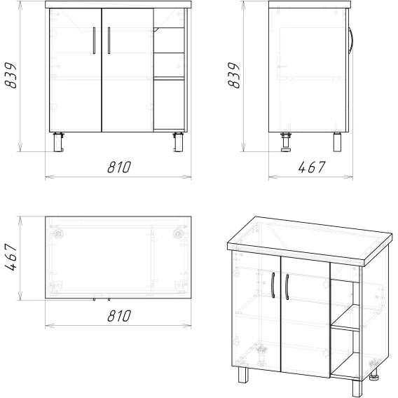 Механизм доводчика, Полочка, Ручки, Ножки, Тумба под раковину, Раковина
