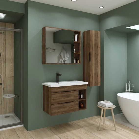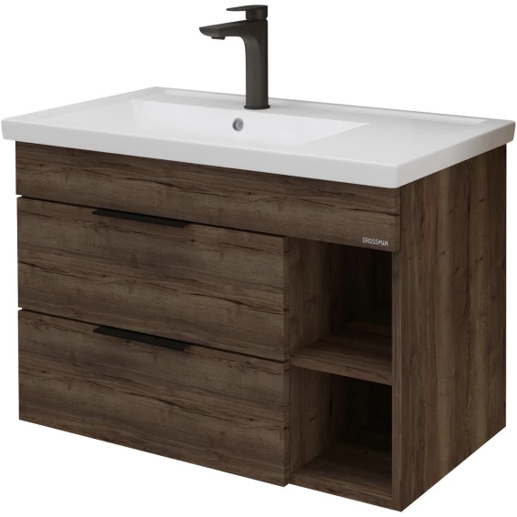 Тумба с раковиной темный дуб 81 см Grossman Форта 1080042 + 30469