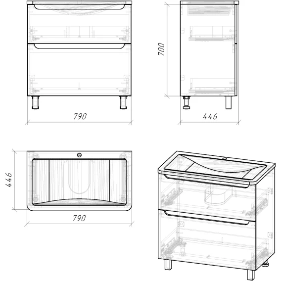 Механизм доводчика, Ящик, Ножки, Тумба под раковину, Раковина
