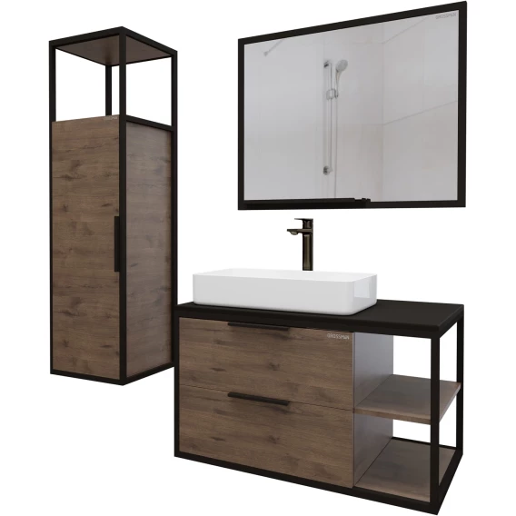 Комплект мебели дуб веллингтон/черный 90 см Grossman Лофт 109001 + GR-3031 + 209001