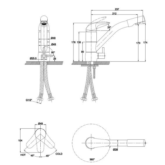 Крепление, Аэратор, Гибкая подводка, Фильтр