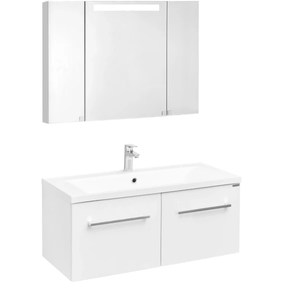 Механизм доводчика, Ящик, Полочка, Ручки, Подсветка, Зеркало-шкаф, Выключатель, Тумба под раковину, Раковина, Силиконовый герметик