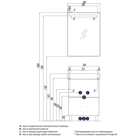 Механизм доводчика, Ящик, Полочка, Ручки, Подсветка, Зеркало-шкаф, Выключатель, Ножки, Тумба под раковину, Раковина