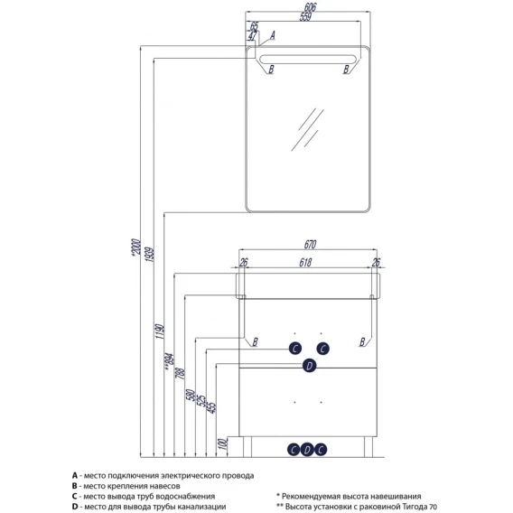 Механизм доводчика, Ящик, Полочка, Ручки, Подсветка, Зеркало-шкаф, Выключатель, Ножки, Тумба под раковину, Раковина