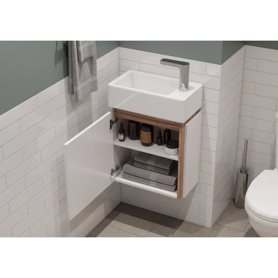 Механизм доводчика, Полочка, Подсветка, Выключатель, Розетка, Зеркало, Тумба под раковину, Раковина