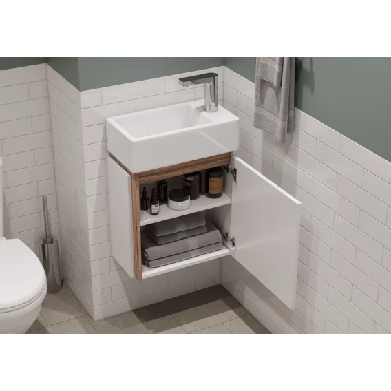 Механизм доводчика, Полочка, Подсветка, Выключатель, Розетка, Зеркало, Тумба под раковину, Раковина