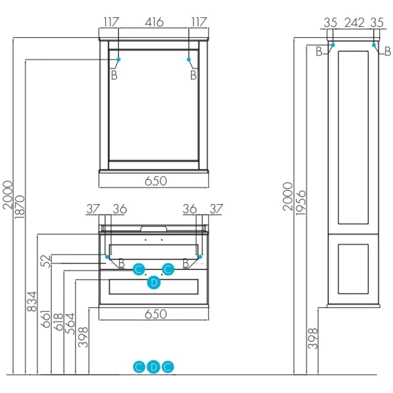 Механизм доводчика, Ящик, Полочка, Ручки, Зеркало, Тумба под раковину, Раковина